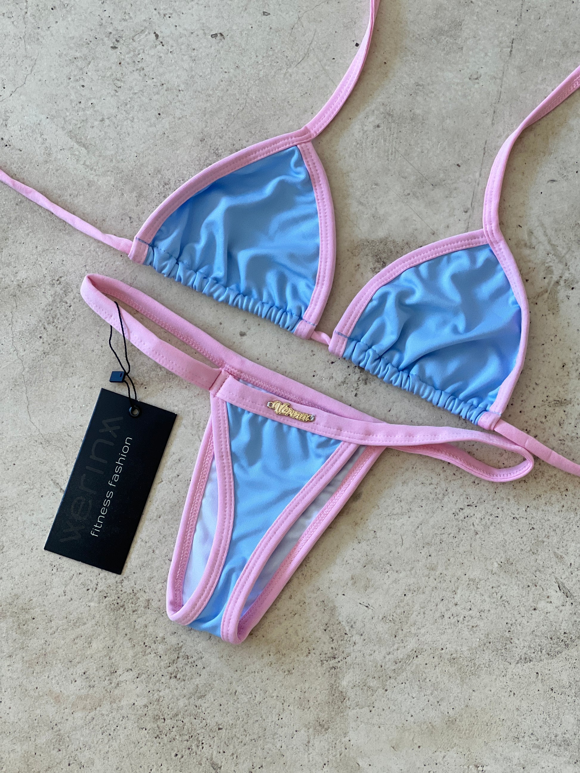 Hermoso bikini de 2 piezas, con tiras para amarres en top para un ajuste perfecto, y bottom con formato tanga alta (asa delta).