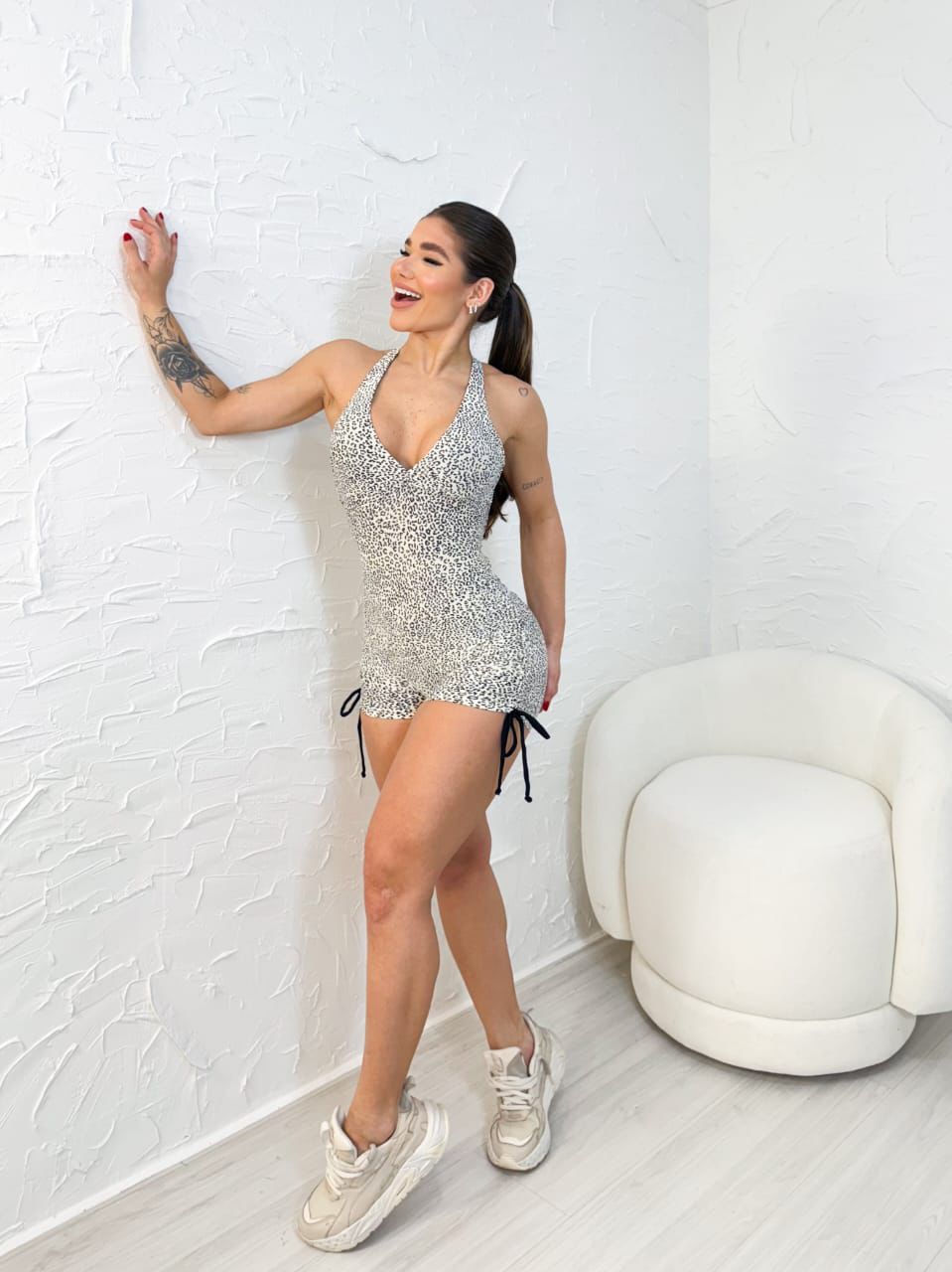 Hermoso enterizo corto con scrunch en glúteos de tela supplex brasileña, elástica.