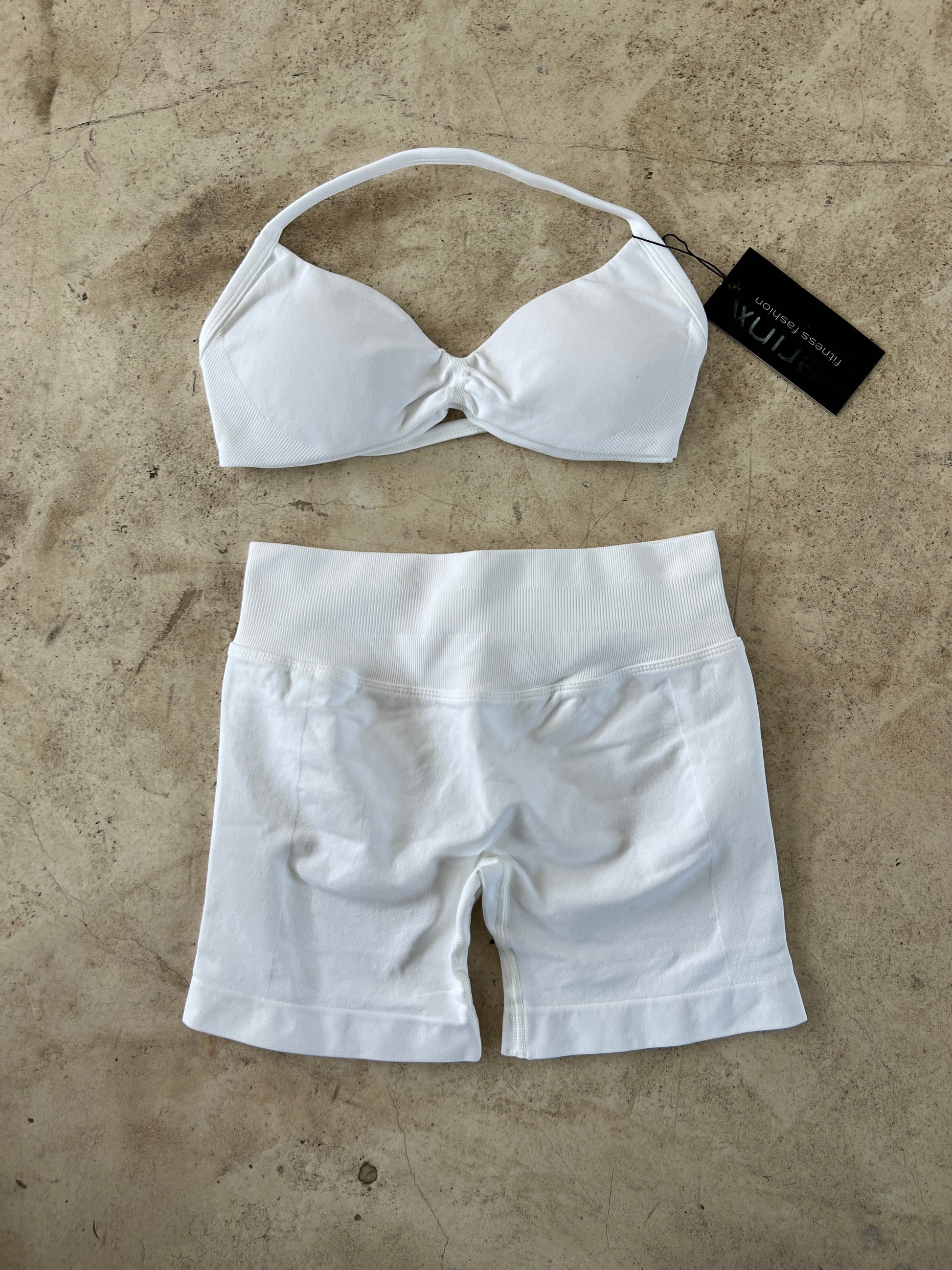 Set de short con plisado en glúteo y top con copas removibles.