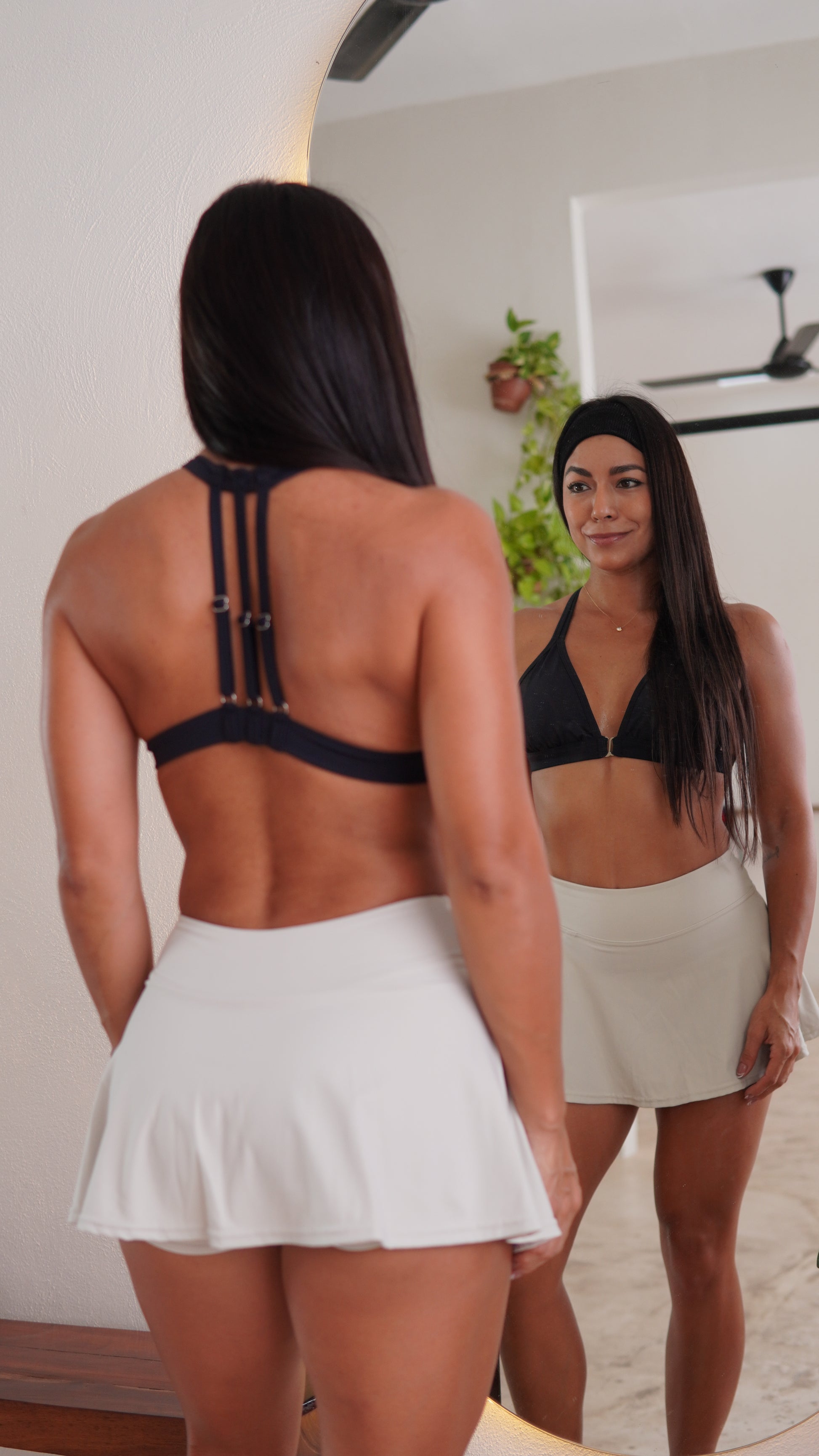 Top bra con tiras ajustables en la parte de la espalda, de tela poliamida con elastano